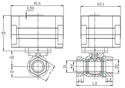 五.微型电动球阀产品外形尺寸表(单位mm):